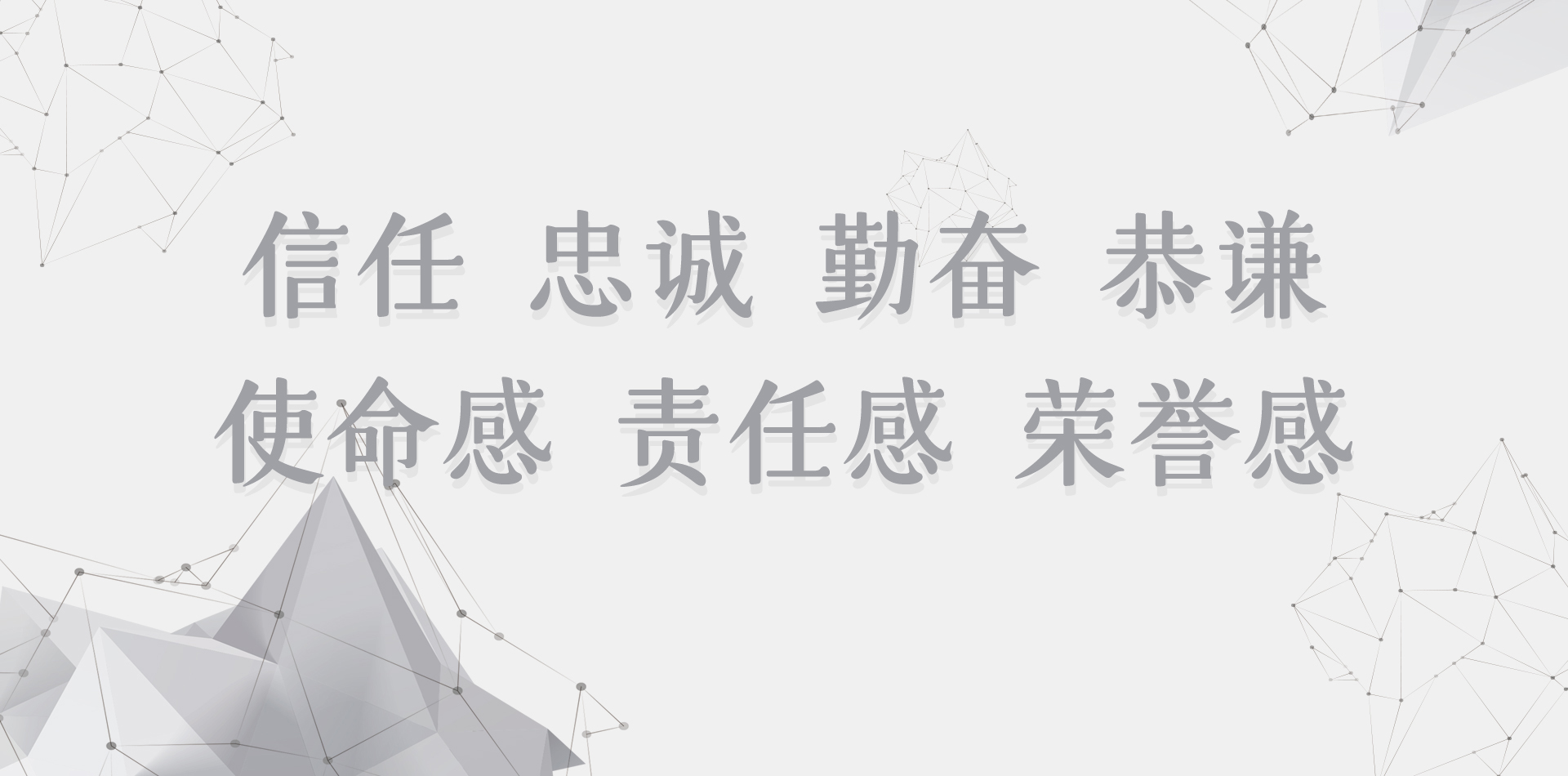 價(jià)值觀篤定“信任 忠誠(chéng) 勤奮 恭謙 使命感 責(zé)任感 榮譽(yù)感”;踐行以“客戶利益為中心的核心價(jià)值觀”。